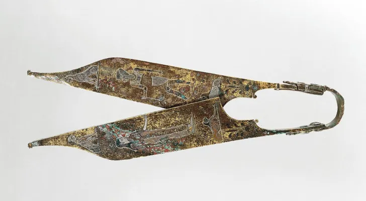 Intanto, più a est, in Mesopotamia — circa 3.000–4.000 anni fa — nasceva la forbice. È possibile che il popolo di Orfeo ne conoscesse l’esistenza? Forse sì o forse no. Anche in Egitto, attorno al 1500 a.C., si usavano forbici di bronzo: due lame collegate da una striscia flessibile che fungeva da elemento elastico.
